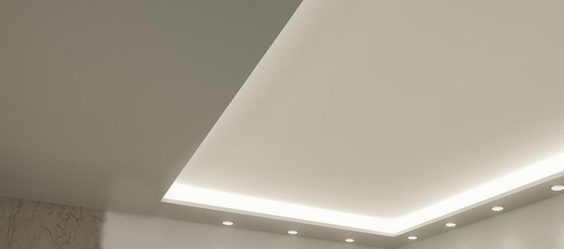 Мы сразу устанавливаем освещение любого типа: контурное, точечное, классическое верхнее.
