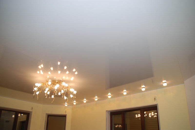 Для усиления эффекта объема попросите на стадии замера во Владимире мастера рассчитать несколько источников света. Они не обязательно должны быть мощными, подойдут споты, светодиодные светильники, но чем их больше, тем больше отражений появится на потолке.