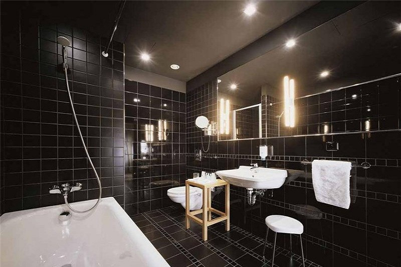 Конечно, если они вписываются в концепцию вашей ванной. Темный мат смотрится очень необычно, подходит для интерьеров в стиле лофт. Глянец отлично отражает предметы и похож на темное зеркало.