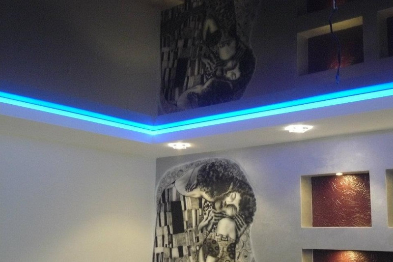 Для усиления эффекта объема попросите на стадии замера во Владимире мастера рассчитать несколько источников света. Они не обязательно должны быть мощными, подойдут споты, светодиодные светильники, но чем их больше, тем больше отражений появится на потолке.