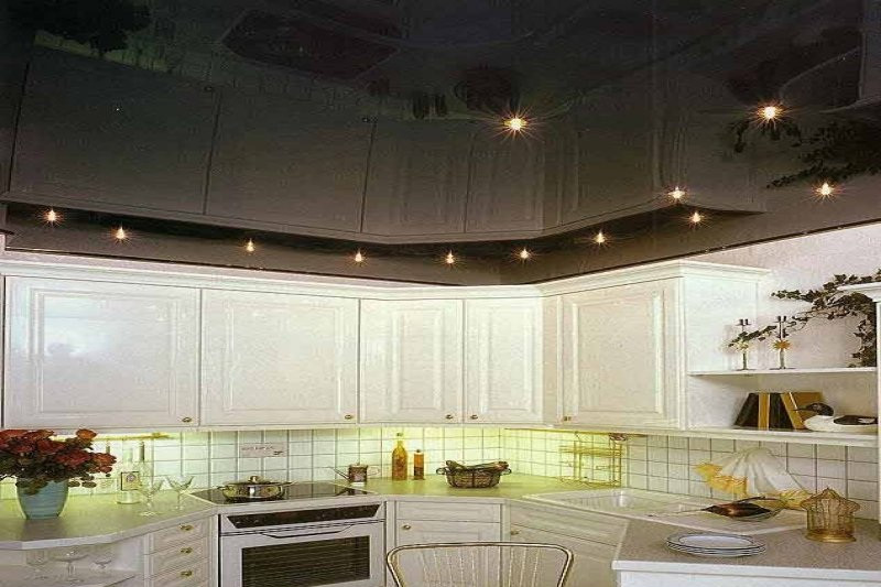 У пленочного потолка из поливинилхлорида есть бесспорное преимущество, оно защитит кухню, мебель, стены и пол в случае затопления водой соседями. ПВХ «запрет» внутри себя воду, не даст ей просочиться и испортить сыростью обстановку.