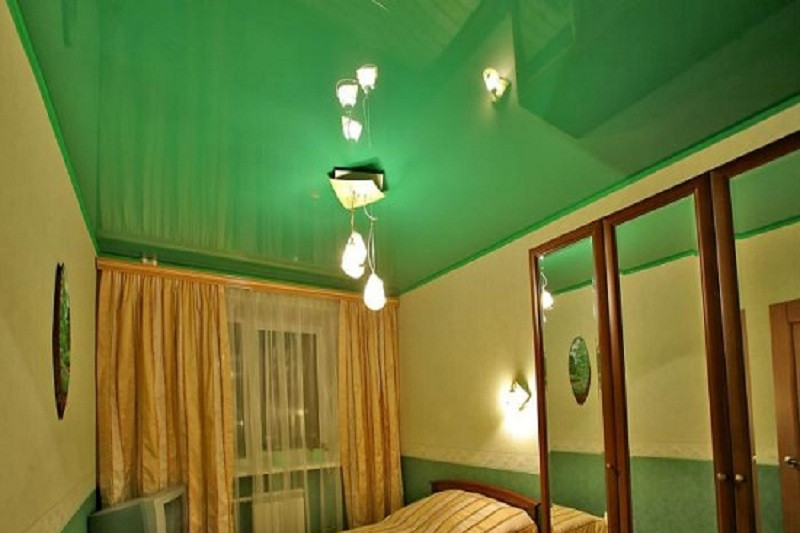 Тем, кто предпочитает более характерные решения, рекомендуем установить яркое матовое полотно. Оно смотрится особенно эффектно, так как кажется идеально ровной крашеной поверхностью.