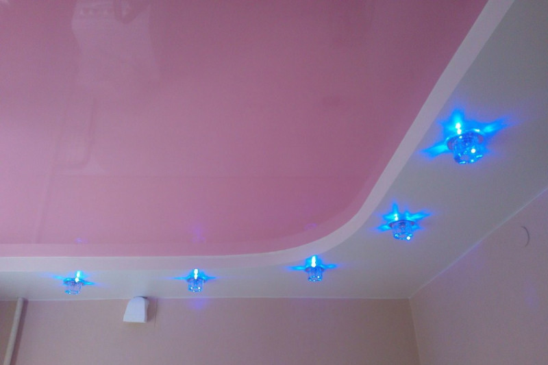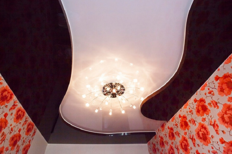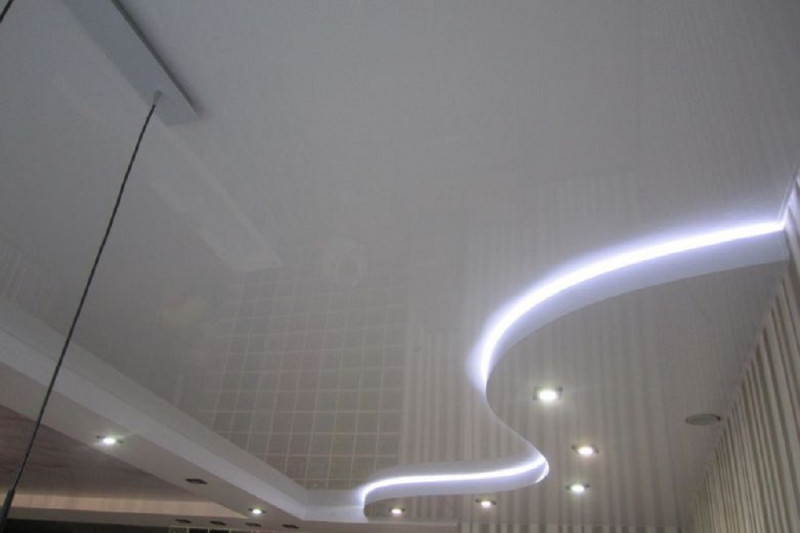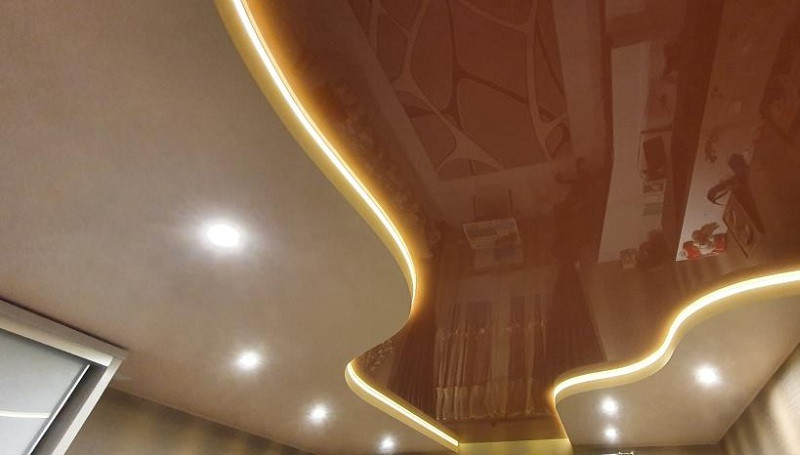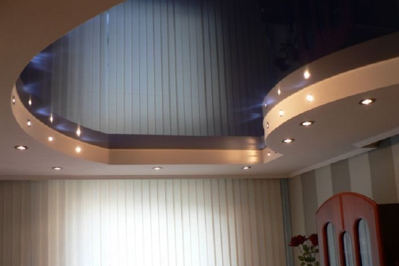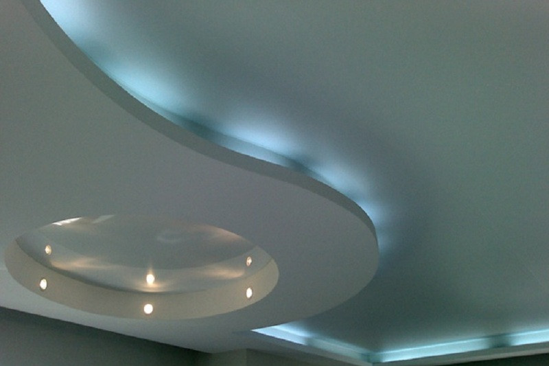 Освещение в принципе способно делать пространство более объемным. Свет в двухуровневом потолке выполняют из светодиодных лент, встраивая их между уровнями, точечными светильниками, спотами. Хорошо смотрятся треки – вы сможете перемещать светильники вдоль в любом направлении, меняя сценарии освещения.