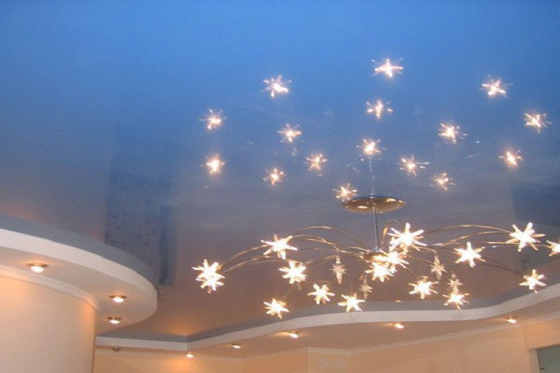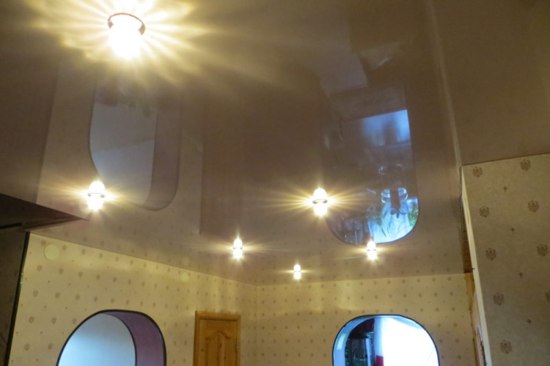 Для усиления эффекта объема попросите на стадии замера во Владимире мастера рассчитать несколько источников света. Они не обязательно должны быть мощными, подойдут споты, светодиодные светильники, но чем их больше, тем больше отражений появится на потолке.