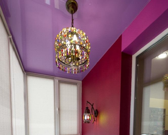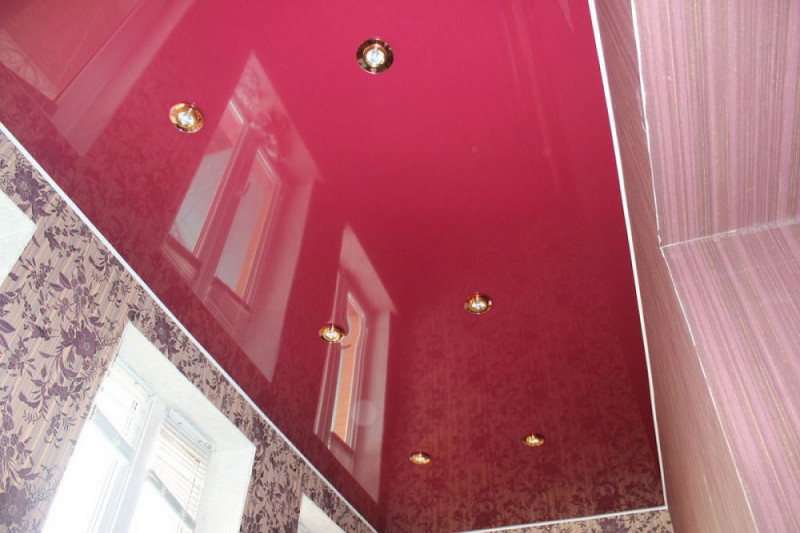 Тем, кто предпочитает более характерные решения, рекомендуем установить яркое матовое полотно. Оно смотрится особенно эффектно, так как кажется идеально ровной крашеной поверхностью.