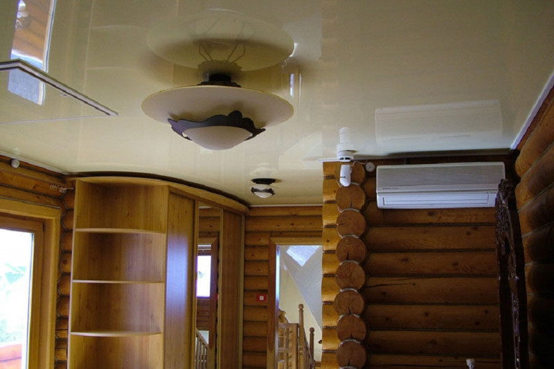 Установке натяжного потолка это не повредит, так как он замаскирует как неудачно проложенные провода, так и коммуникации, в том числе и кондиционер.