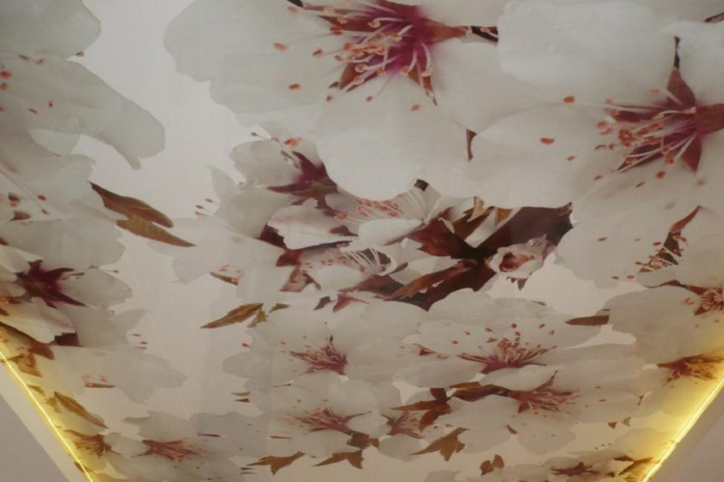 Часто наши клиенты во Владимире выбирают натяжные потолки с печатью. Рисунок добавляет пространству яркости и самобытности. Сюжетами обычно становятся фрукты, цветы, живая природа.