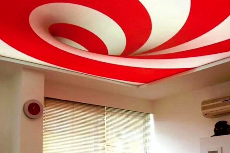 Тем, кто предпочитает более характерные решения, рекомендуем установить яркое матовое полотно. Оно смотрится особенно эффектно, так как кажется идеально ровной крашеной поверхностью.