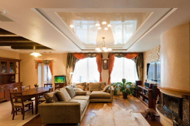 Чем больше помещение, тем больше потребуется для него материала и бюджет, соответственно вырастет. Есть разница и в типе. В частности, сертифицированная по ГОСТу ткань обойдется в 3-4 раза дороже пленки ПВХ такого же хорошего качества. Цена последней также разнится: белое полотно любого европейского производителя заметно дешевле цветного, особенно ярких тонов, поэтому учитывайте этот момент.