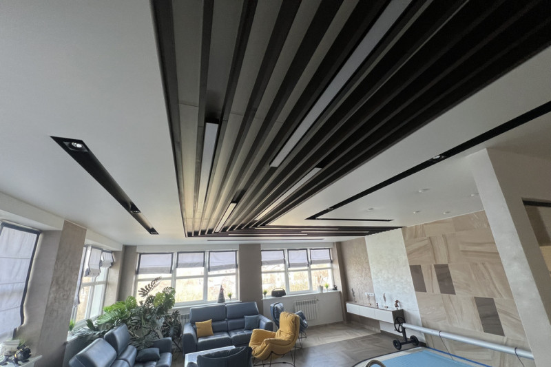Мы производим экологически безопасные полотна без запаха, легкие в уходе, с покрытием-защитой от пыли, чтобы статический эффект не портил вид потолка пылью. Можно сэкономить на конструкции покрытия и выбрать самую простую.