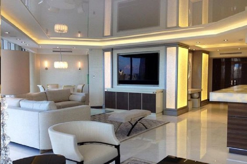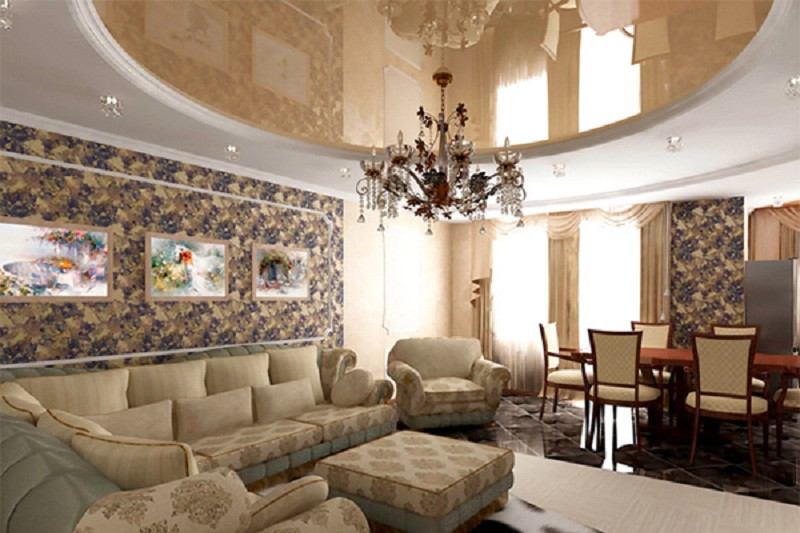 Такой потолок смотрится внушительно, привычно, он сочетается с любым стилем дизайна, не привлекает к себе лишнее внимание. Это особенно актуально для комнат с лаконичной отделкой в серых, бежевых цветах, которые особенно модны сейчас.