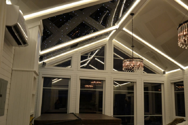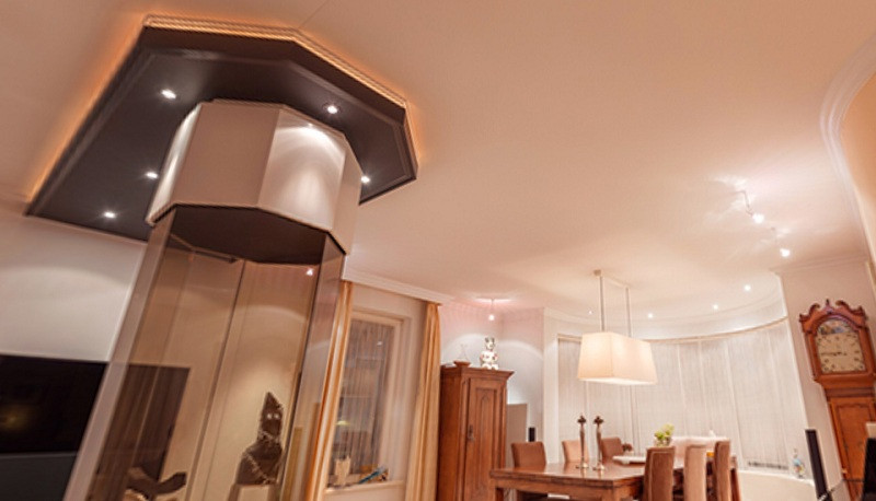 Лишнее количество уровней, сложность светового оборудования также дадут рост цены. Так, один вывод будет под люстру или монтаж Звездного неба с оптоволоконными нитями может занять пару дней и обеспечит удорожание в несколько тысяч рублей.