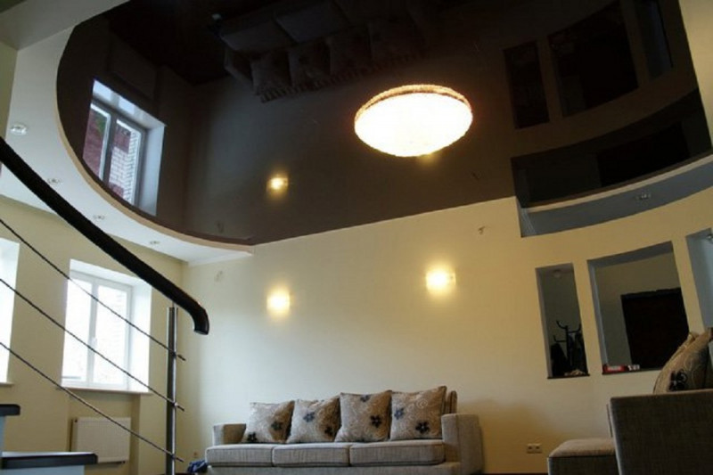 Есть разные варианты стилистических решений такой конструкции. Чаще всего уровни представляют собой комбинации разных фактур пленочных полотен. Например, чтобы подчеркнуть объем или зонировать помещение, выбирают контрастные цвета: черный, белый, красный и т.п. Если при этом есть разница еще и в фактурах (глянцевая и матовая), эффект гарантирован.
