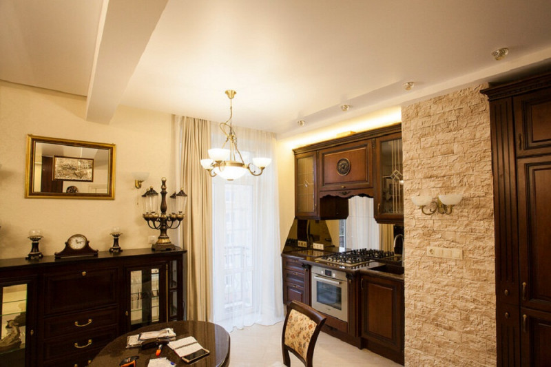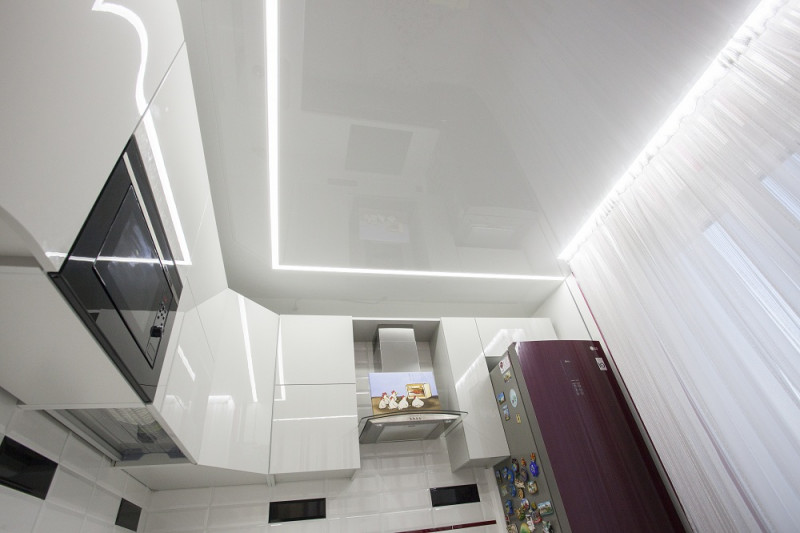 У пленочного потолка из поливинилхлорида есть бесспорное преимущество, оно защитит кухню, мебель, стены и пол в случае затопления водой соседями. ПВХ «запрет» внутри себя воду, не даст ей просочиться и испортить сыростью обстановку.