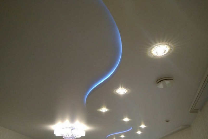 Лишнее количество уровней, сложность светового оборудования также дадут рост цены. Так, один вывод будет под люстру или монтаж Звездного неба с оптоволоконными нитями может занять пару дней и обеспечит удорожание в несколько тысяч рублей.