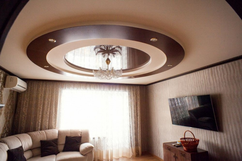 Такой потолок смотрится внушительно, привычно, он сочетается с любым стилем дизайна, не привлекает к себе лишнее внимание. Это особенно актуально для комнат с лаконичной отделкой в серых, бежевых цветах, которые особенно модны сейчас.