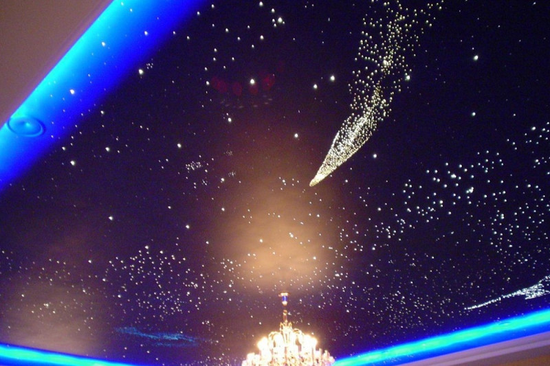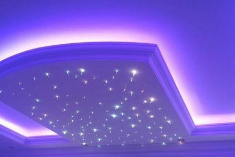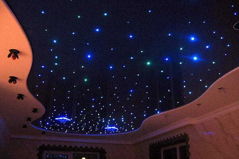 Лишнее количество уровней, сложность светового оборудования также дадут рост цены. Так, один вывод будет под люстру или монтаж Звездного неба с оптоволоконными нитями может занять пару дней и обеспечит удорожание в несколько тысяч рублей.