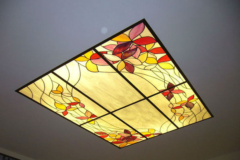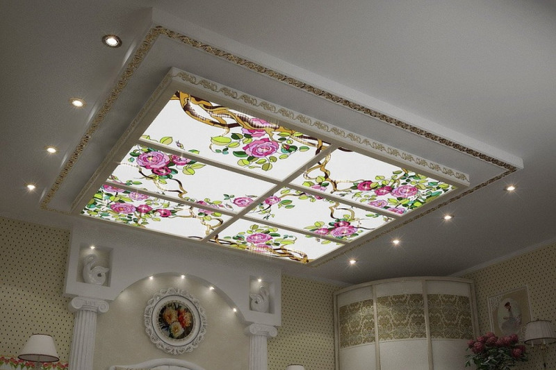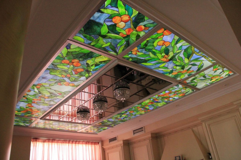 Рисунок может быть любым. Для кухни или ванной выбирают что-то тематическое: фрукты, подводный мир и т.п. Для гостиной, спальни, детской подходят пейзажи, кроны деревьев, небо в облаках или изображения любимых ребенком сказочных героев.